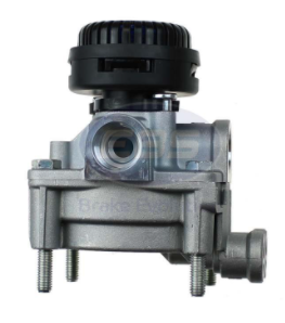 Sans la vanne de relais, il faudrait trop longtemps pour que suffisamment d’air circule de la pédale de frein vers l’arrière du camion ou de la remorque pour serrer les freins de service arrière simultanément avec les freins de service avant, ce qui entraîne un retard de freinage. . Pour corriger cette situation sur un véhicule à long châssis, une soupape de relais est installée près des chambres de frein de service arrière. Dans les tracteurs comme dans les camions droits, une alimentation d’air à distance est fournie sous la forme d’un tuyau de grand diamètre connecté entre le réservoir principal et la soupape relais pour l’application du frein de service à distance.